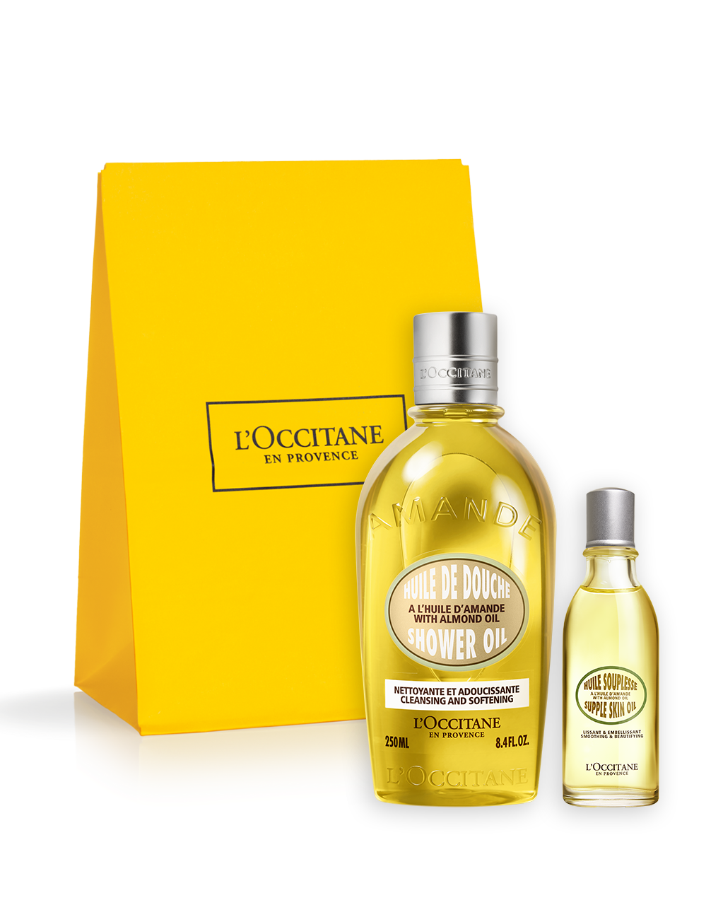 Rengjør kroppen i dusjen med Almond Shower Oil og tilfør deretter fuktighet med Almond Supple Skin Oil på tørr hud.