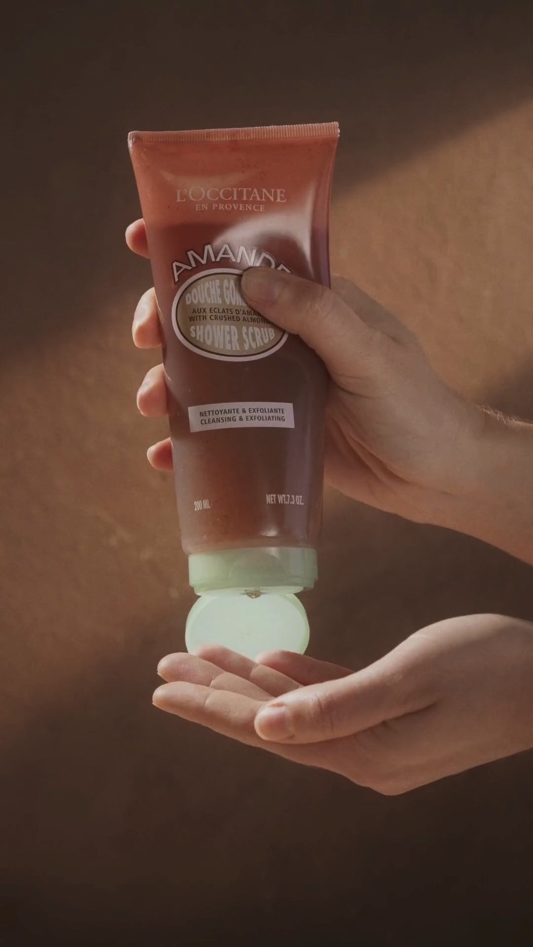 Denne kroppsskrubben er beriket med knuste mandelskall og søt mandelolje fra Provence, og har en gel-lignende konsistens som eksfolierer kroppen skånsomt, og fjerner urenheter og døde celler. Den egner seg til daglig bruk, og tilfører huden en delikat, men diskré, duft av friske mandler.